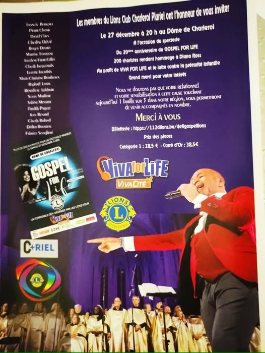 C’est un concert Gospel oraganisé par le Lions Club Charleroi+riel, au profit de VIVA FOR LIFE (enfants en situation de précarité).